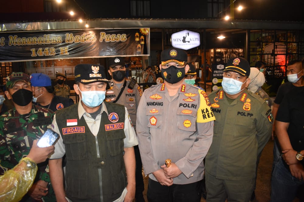 Rombongan Forkopimda melanjutkan patroli tempat-tempat usaha yang tidak mematuhi Protikol Kesehatan sebagaimana yang diatur dalam Intruksi Walikota Pekanbaru, No: 003.2/DPMPTSP/609/2021 tentang Pelaksanaan Kegiatan selama bulan suci Ramadhan 1442 H/2021 M, di seputaran Kecamatan Tampan (Jalan Soebrantas, Jalan Delima, Jalan Lobak, Jalan Soekarno Hatta) dan Kecamatan Marpoyan Damai (Jalan Arifin Ahmad) Kota Pekanbaru.