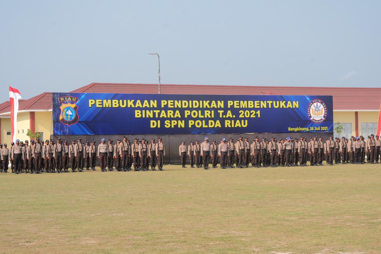 Kapolda Riau, Irjen Pol Agung Setya Imam Efendi membuka secara resmi Pendidikan Pembentukan Bintara Polri TA 2021 (Diktukba) di Lapangan Hitam SPN Polda Riau Desa Kualu Nenas Rimbo Panjang Kabupaten Kampar, Senin (26/07/2021)