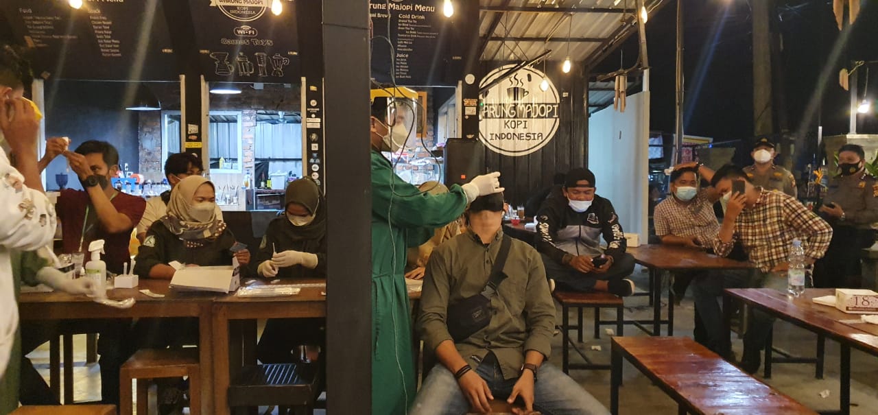 Tim Yustisi Hunting Regu II dan Dinas Kesehatan juga melakukan Swab di tempat bagi masyarakat yang berkunjung ke tempat usah tersebut. Dari hasil swab yang dilakukan tiga puluh tujuh pengunjung warung Majopi Non Reaktif.