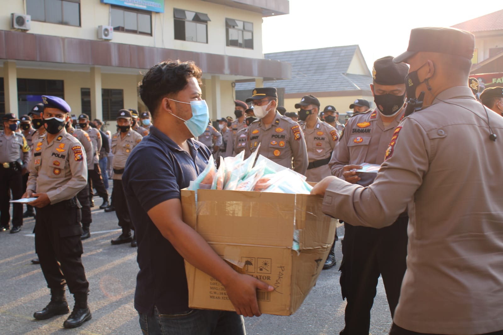 PEKANBARU--(KIBLATRIAU.COM)-- Kapolresta Pekanbaru Kombes Pol. Dr. Pria Budi, S.I.K., M.H memberikan Reward kepada Babinkamtibmas dan Personil Polda Riau BKO Polresta Pekanbaru atas pencapaian Tracing dalam penangan Covid-19 di Kota Pekanbaru, Sabtu (28/08/2021). Dalam pelaksanaan pemberian reward yang dilakukan di halaman belakang Mako Polresta Pekanbaru, Kapolresta memberikan reward kepada Babinkamtibmas dan Personil Polda Riau BKO Polresta Pekanbaru sebagai bentuk apresiasi dan penghargaan atas apa yang telah dicapai selama ini dalam menjalankan program 3T(Testing, Tracing, Treatment) yang dihadiri oleh PJU Polresta Pekanbaru, Kapolsek Jajaran Polresta Pekanbaru, Personil Polda BKO Polresta Pekanbaru, Bhabinkamtibmas Polresta Pekanbaru.