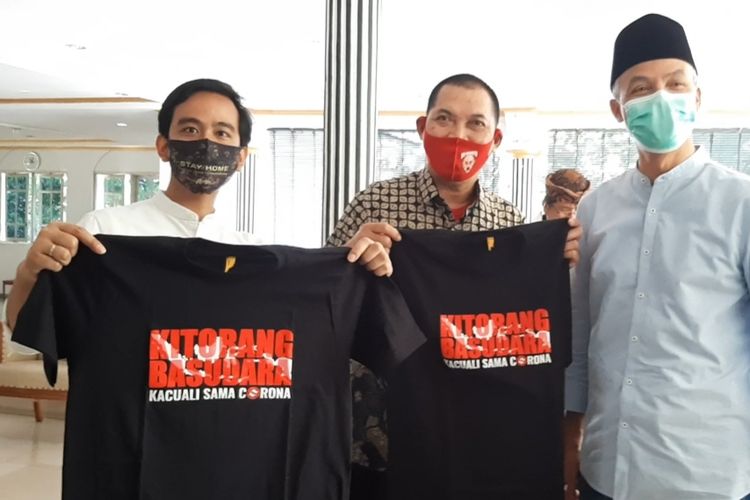 Gibran menyerahkan kaos kepada Ganjar Pranowo