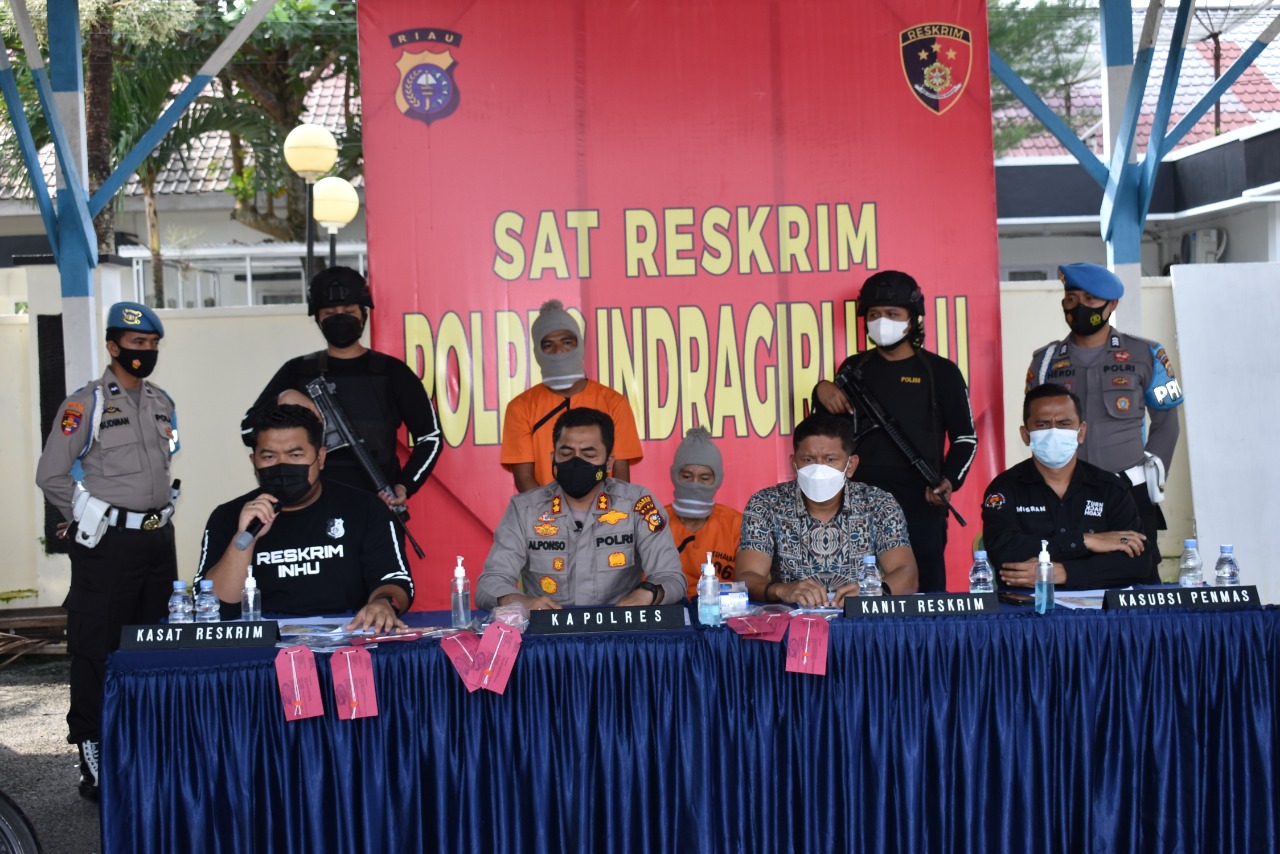 TIM BURU Sergap (Buser) Polres Indragiri Hulu (Inhu) berhasil menangkap dua pelaku tindak pidana pencurian dengan pemberratan (curat) setelah 5 hari bekerja ekstra memburu para pelaku.Adapun pelaku itu Heri Wijaya (42) dan Firdaus Ariansyah (31) yang merupakan warga Kecamatan Kayu Agung Kabupaten Ogan Komering Ilir (OKI) Palembang Provinsi Sumatera Selatan harus mempertanggung jawabkan perbuatannya. Pasalnya, kedua pelaku melakukan tindak pidana pencurian dan pemberatan (Curat) dengan cara memecahkan kaca mobil yang sedang diparkir, milik Andri (26) pengusaha sawit di Kabupaten Indragiri Hulu (Inhu) pada Kamis (13/1/2022) lalu.