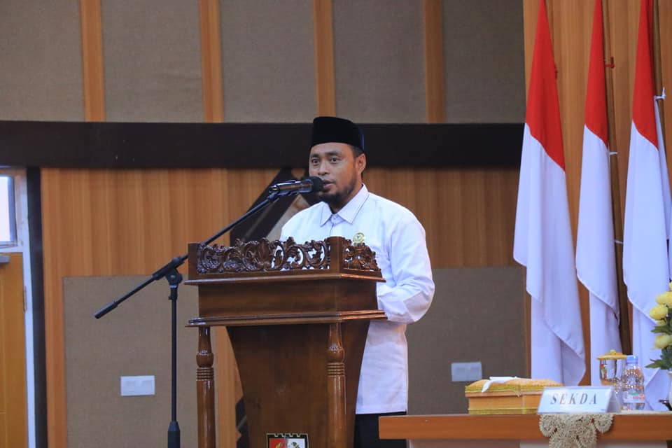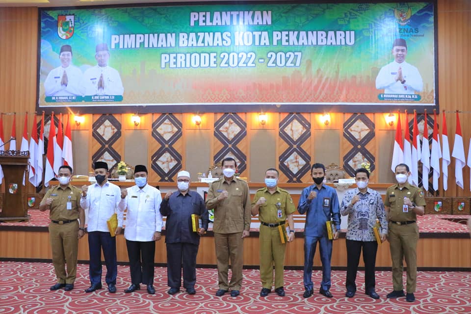 Walikota Pekanbaru DR Firdaus, MT lantik kepengurusan Baznas di Aula lantai 6 Komplek Kantor Walikota Tenayan Raya, Senin, (31/1/2022)