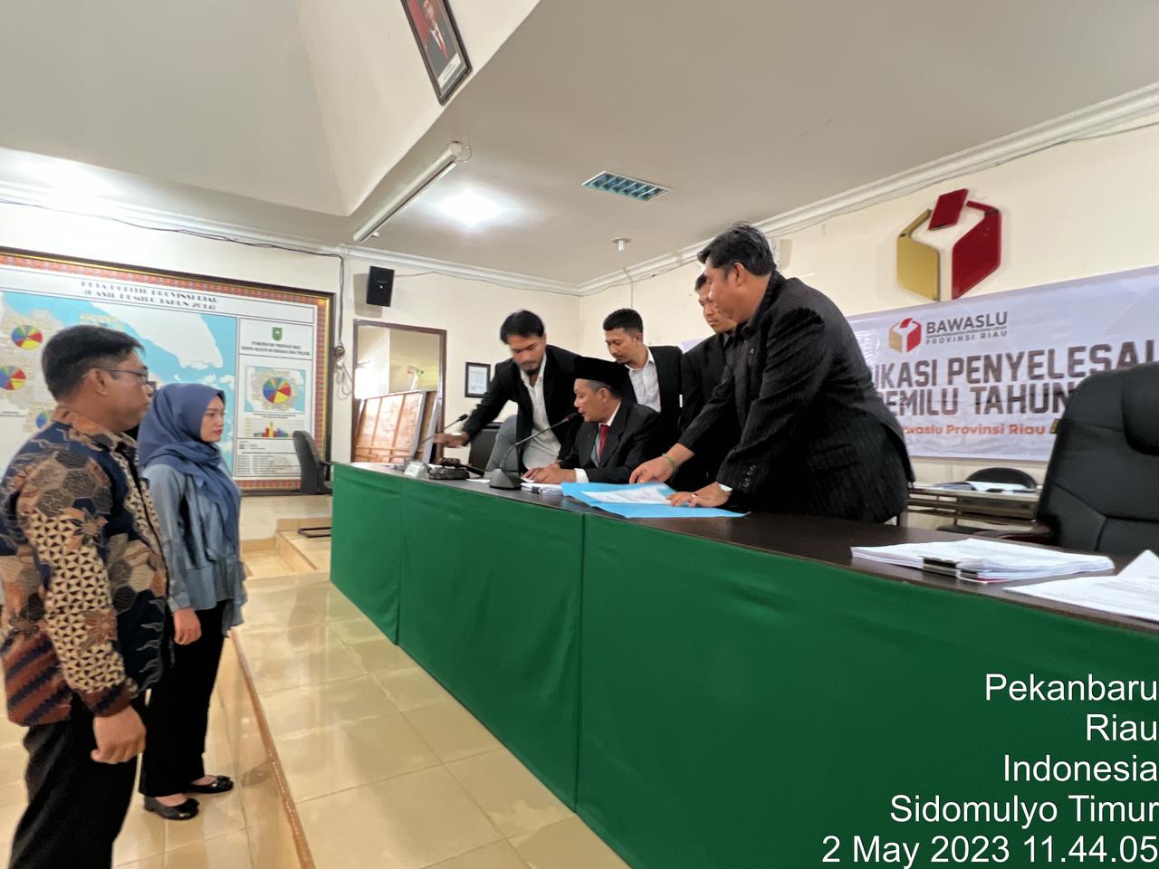 Komisi Pemilihan Umum (KPU) Riau menghadiri sidang lanjutan sengketa proses yang dimohonkan Bakal Calon (Bacalon) Anggota DPD RI atas nama Sonny Magranta Silaban dengan nomor register 06/PS.REG/14/IV/2023 dengan KPU Riau sebagai termohon, Selasa (2/5/2023
