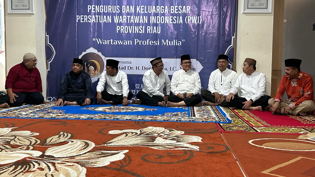 PEKANBARU--(KIBLATRIAU.COM)-- Sedikitnya ratusan wartawan menghadiri kegiatan berbuka bersama pengurus dan keluarga besar Persatuan Wartawan Indonesia (PWI) Riau, Selasa (2/4/2024). Tak hanya berbuka Bersama, kegiatan juga diisi dengan tausiyah hingga pembagian sembako dan uang tunai kepada anak yatim dan janda wartawan.Hadir dalam kegiatan berbuka bersama Pj Gubernur Riau SF Hariyanto  yang diwakili Kepala Dinas Komunikasi Informatika dan Statistik (Diskominfotik) Provinsi Riau Ikhwan Ridwan, para mantan Gubernur Riau yakni Syamsuar, Edy Natar Nasution dan Rusli Zainal.Turut hadir Kapolda Riau yang diwakili Kabid Humas Kombes Pol Hery, Danrem, Forkopimda, dan juga para wartawan senior serta ratusan pengurus dan anggota PWI Riau.