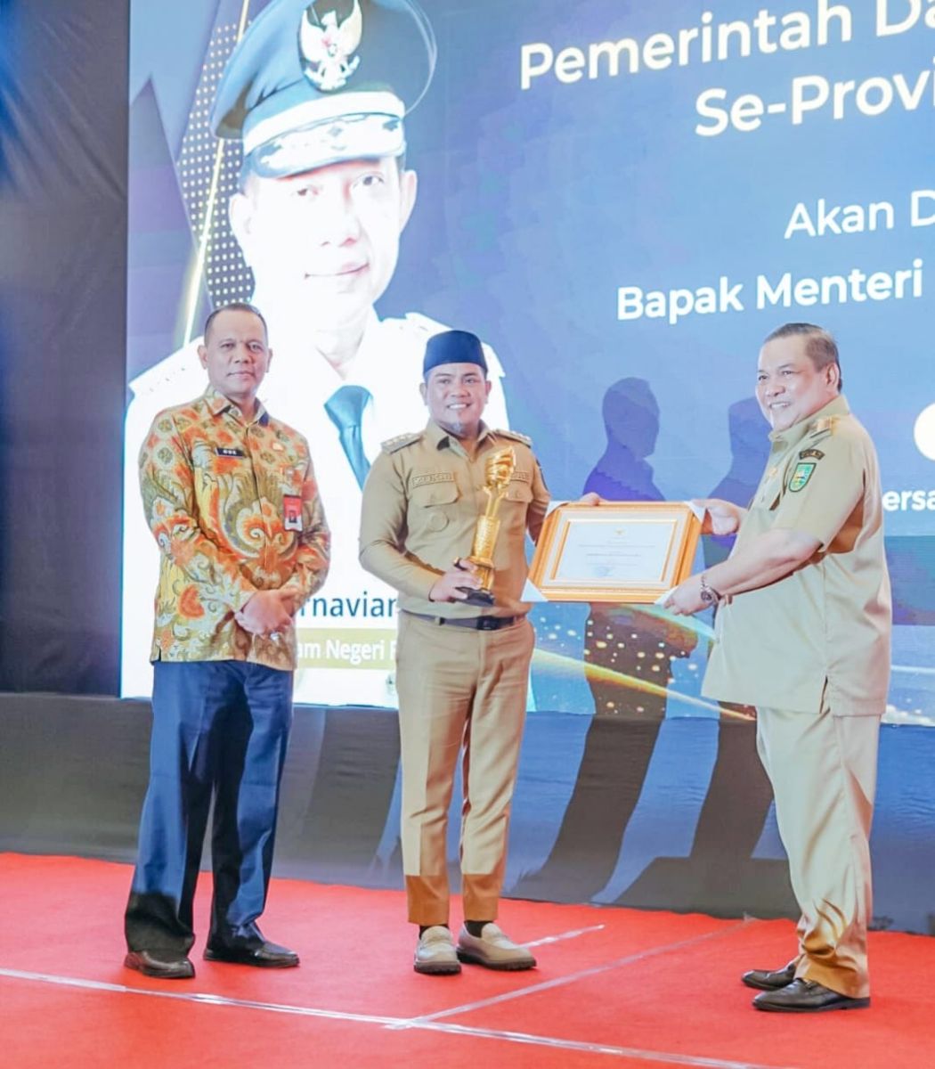 Penghargaan itu langsung diterima oleh Bupati Pelalawan H Zukri SE saat Rapat Koordinas (Rakor) pemerintah daerah dan pemerintah desa se-Provinsi Riau di Hotel Labersa Pekanbaru, Jumat (03/05/2024).