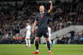 Selebrasi Erling Haaland dalam laga Premier League antara Tottenham vs Manchester City, Rabu (15/5/2024).