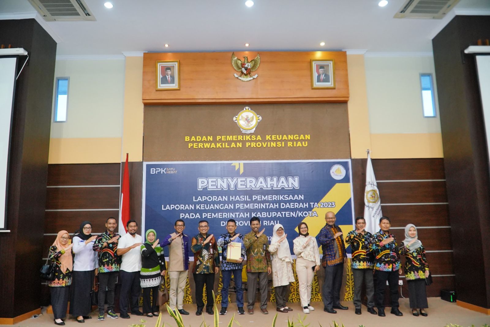 Penyerahan LHP LKPD Tahun Anggaran 2023 pada Pemerintah Kabupaten /Kota di Provinsi Riau dilaksanakan di Gedung Badan Pemeriksa Keuangan Perwakilan Provinsi Riau di Pekanbaru, Rabu (22/05 /2024)