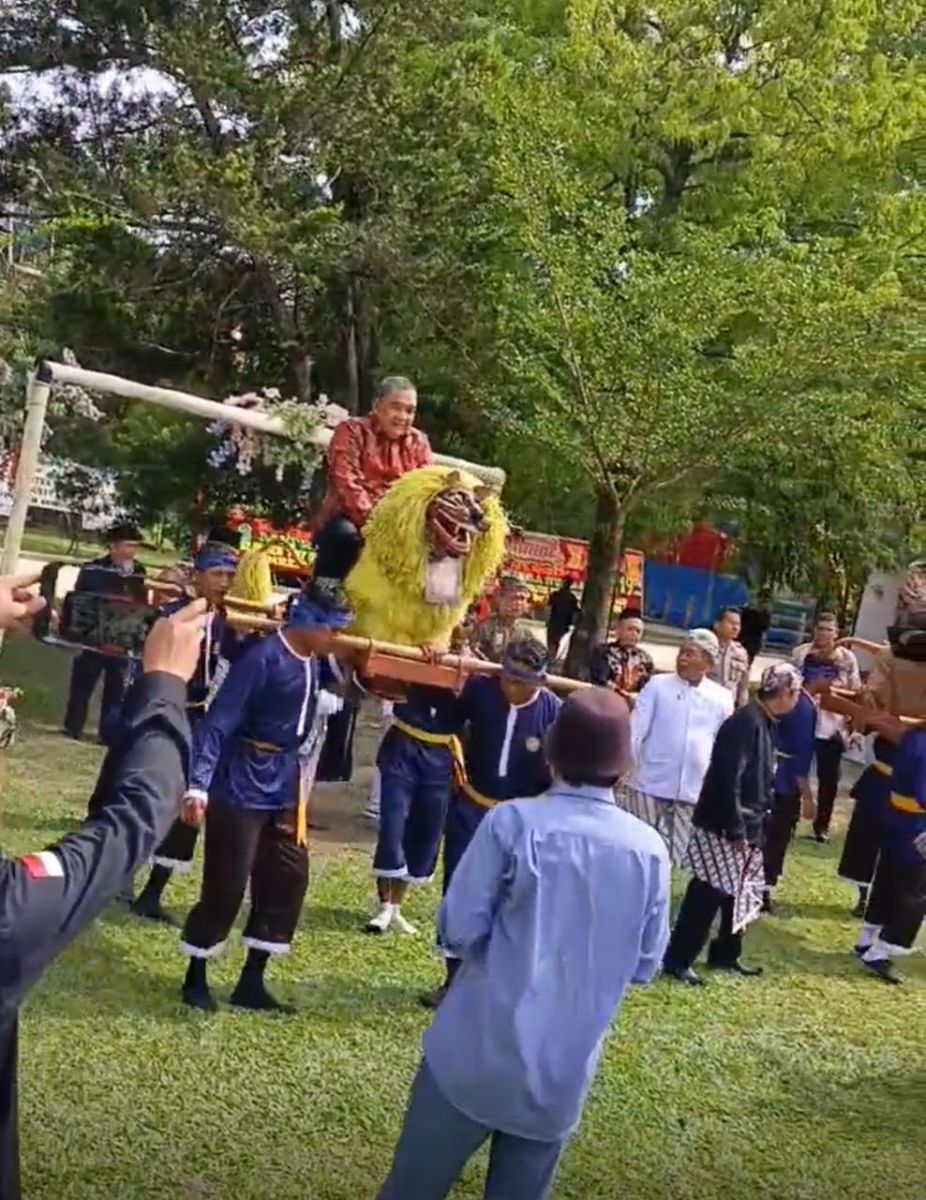 PEKANBARU--(KIBLATRIAU.COM)-- Saat menghadiri Hari Ulang Tahun (HUT) Paguyuban Mitra Sunda Riau (MISURI) Ke-19 di Taman Rekreasi Alam Mayang, Pekanbaru, Calon Walikota Pekanbaru Brigjen TNI (Purn) H Edy Natar Nasution disambut meriah dan diarak gunakan tunggangan Singa oleh pengurus serta masyarakat yang tergabung dalam Paguyuban MISURI. Sabtu (7/9/2024).