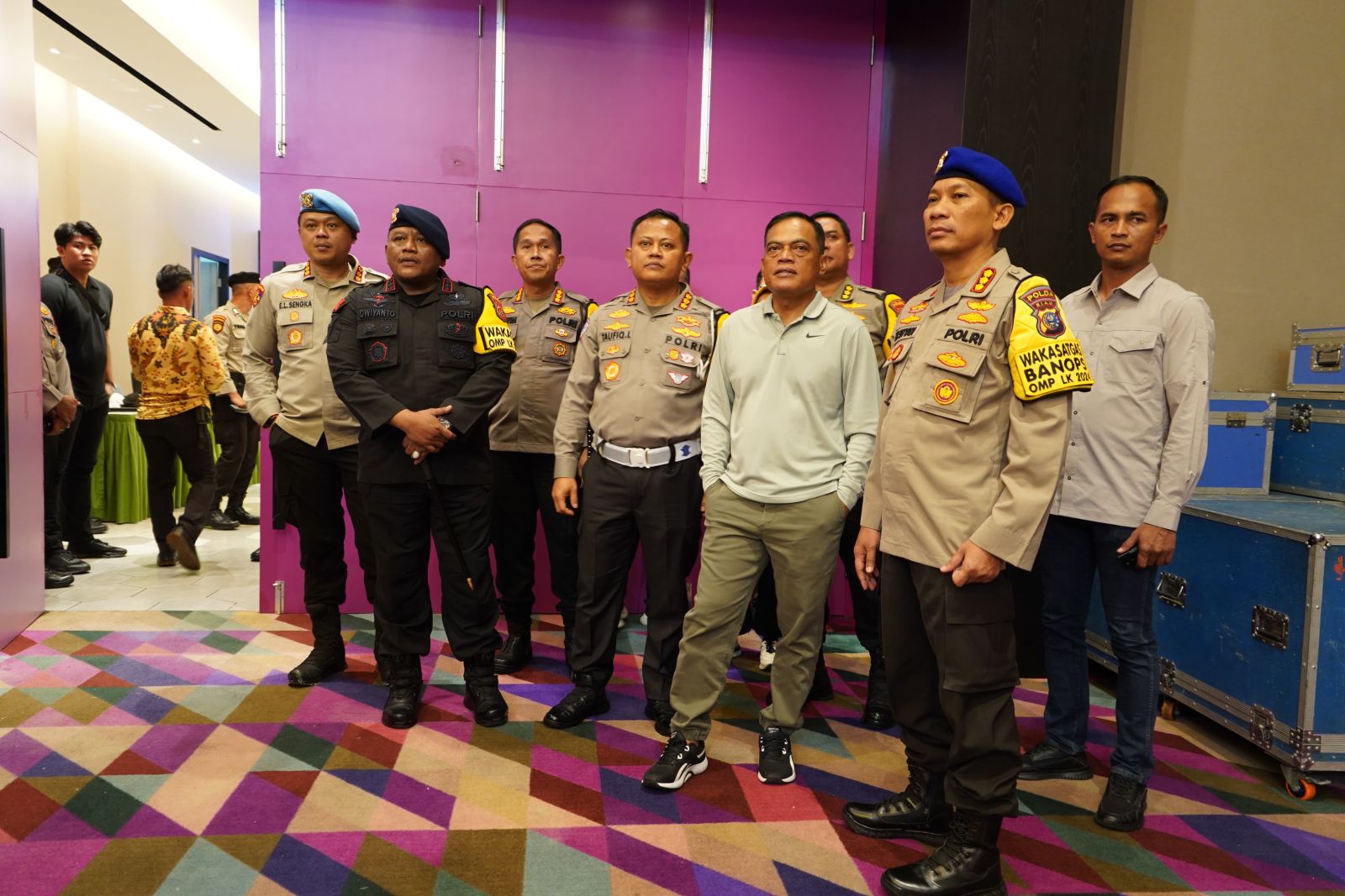 PEKANBARU--(KIBLATRIAU.COM)--Dalam tahapan kampanye Pemilihan Umum Kepala Daerah (Pilkada) Tahun 2024 Kabupaten Rokan Hilir, Personel Gabungan Polda Riau yang tergabung dalam Satuan Tugas dan Sub Satuan Tugas Operasi Mantap Praja (Satgas dan Sub Satgas OMP) Lancang Kuning 2024, melakukan pengamanan jalannya pertemuan terbatas atau tatap muka Pasangan Calon (Paslon) Bupati dan Calon Wakil Bupati Rokan Hilir dalam kegiatan Kampanye Terbuka Debat Publik yang berlangsung di Ballroom Hotel Zuri Pekanbaru, Rabu (13/11/2024)
