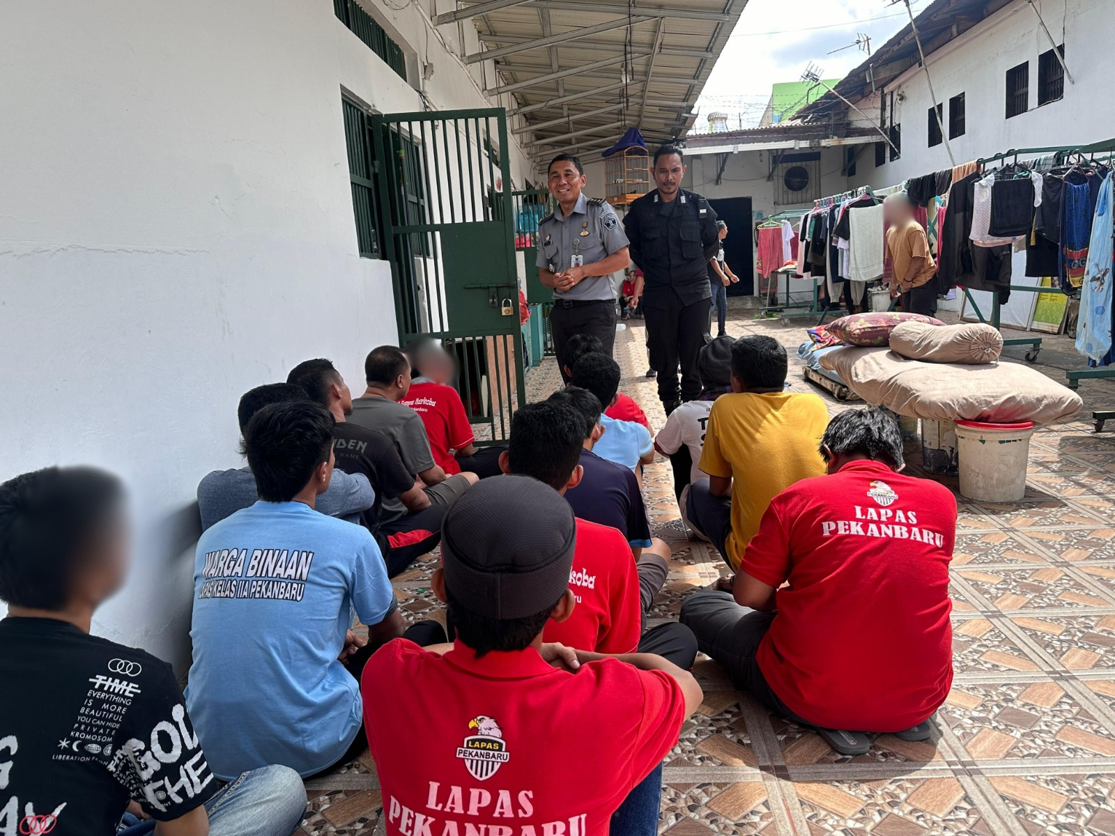 Jajaran Kesatuan Pengamanan Lapas (KPLP) dan Seksi Keamanan dan Ketertiban (Kamtib) Lapas Pekanbaru melaksanakan razia dan penggeledahan kamar hunian warga binaan, Selasa (19/11/2024)