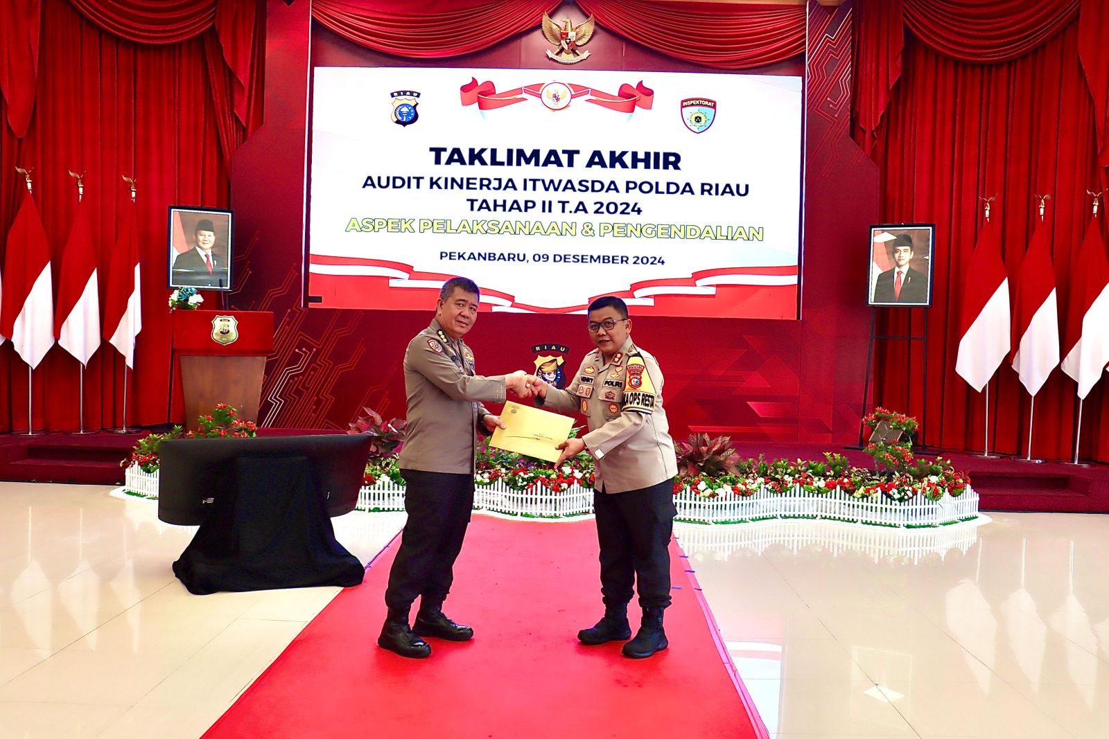 Polresta Pekanbaru menghadiri kegiatan Taklimat Akhir Audit Kinerja Itwasda Polda Riau Tahun Anggaran 2024 yang membahas aspek pelaksanaan dan pengendalian,Senin (9/12/2024)