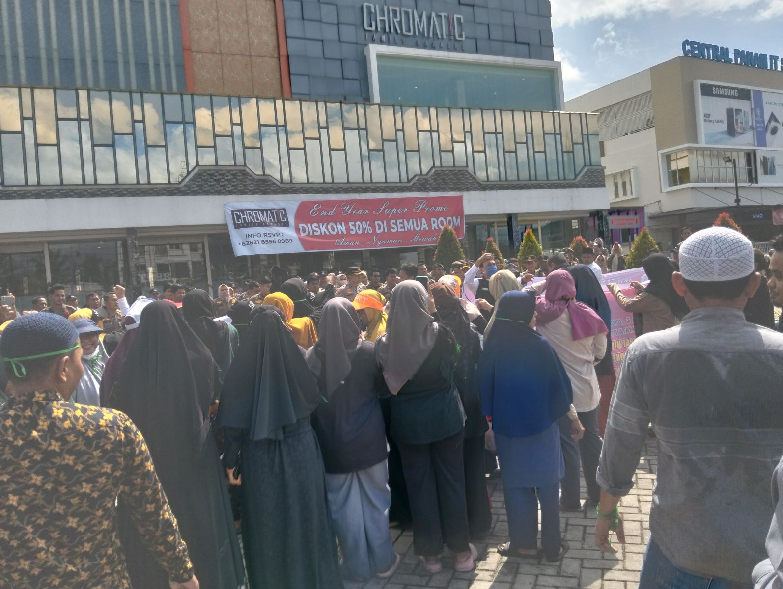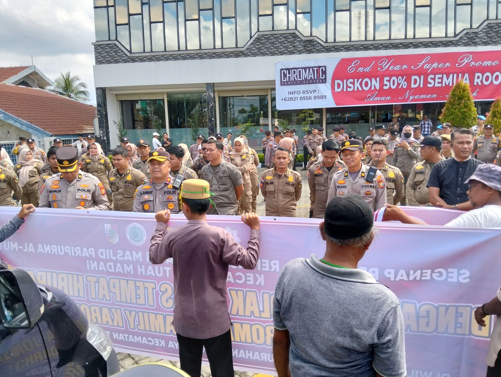 Aksi damai ini dimulai setelah Salat Jumat berjamaah. Warga dari berbagai usia, termasuk ibu-ibu dan anak-anak, tumpah ruah di depan tempat hiburan tersebut. Aksi demontrasi itu di bawah pengawalan ketat aparat Kepolisian dan Satpol PP,. Dimana, massa mulai berkumpul sekitar pukul 13.57 WIB sambil membawa spanduk bertuliskan, “Menolak keras berdiri dan hadirnya tempat hiburan malam Chromatic Family Karaoke.”
