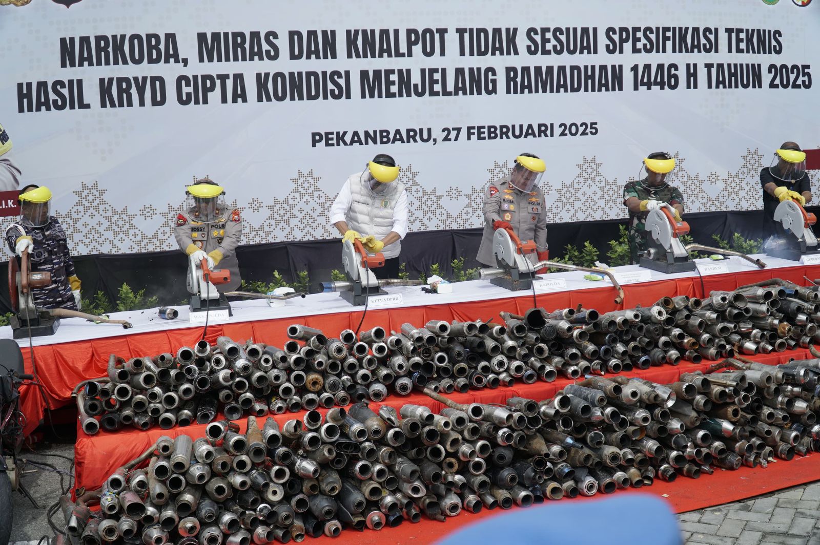 Polda Riau menggelar kegiatan pemusnahan barang bukti hasil Kegiatan Rutin Yang Ditingkatkan (KRYD) dalam rangka menciptakan kondisi aman dan kondusif menjelang bulan suci Ramadhan 1446 H. Acara ini berlangsung Kamis (27/2/2025)