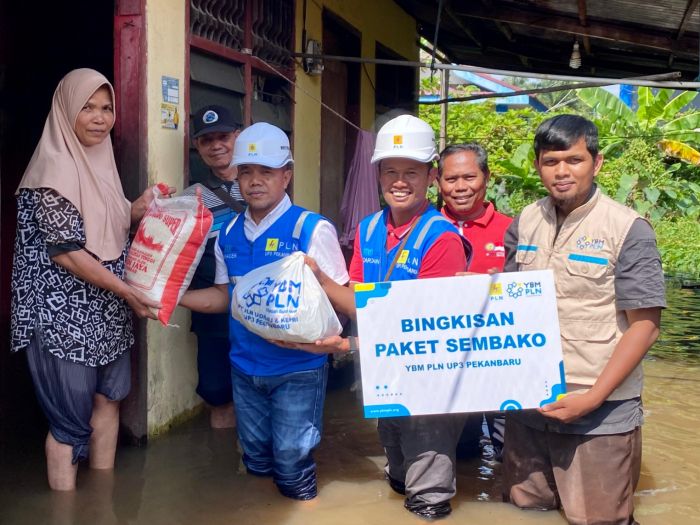 PT PLN (Persero) Unit Pelaksana Pelayanan Pelanggan Pekanbaru melalui Yayasan Baitul Maal (YBM) bergerak cepat salurkan paket bantuan untuk korban terdampak banjir, Jumat (7/3/2025)