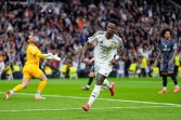 Selebrasi Vinicius Junior dalam laga La Liga antara Real Madrid vs Rayo Vallecano, Minggu (9/3/2025)