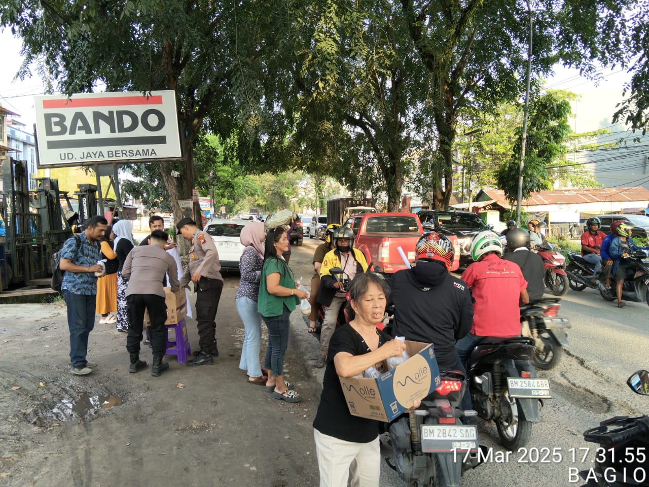 Yayasan Buddha Tzu Chi Indonesia bersama Polsek Sukajadi menggelar kegiatan berbagi takjil kepada masyarakat, Senin (17/3/2025).
