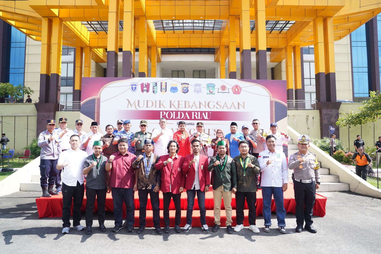 Kapolda Riau Irjen Pol Dr. Herry Heryawan melepas 4 bus rombongan mudik gratis tujuan Sumatera Barat (Sumbar) dan Sumatera Utara (Sumut), Kamis (27/03/2025)