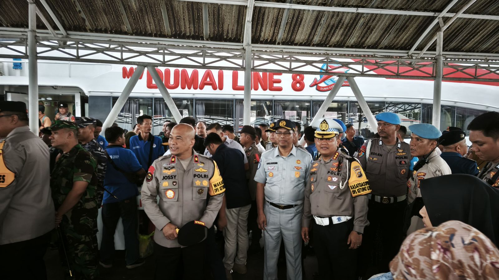 Data yang dirangkum, Kapolda Riau beserta Pejabat Utama (PJU) Polda Riau, Forkopimda Riau, dan Forkopimda Kota Dumai memulai kunjungan sekitar pukul 06.30 WIB di Pelabuhan Pelindo Kota Dumai. Peninjauan ini bertujuan memastikan kesiapan petugas dalam memberikan pelayanan kepada pemudik.