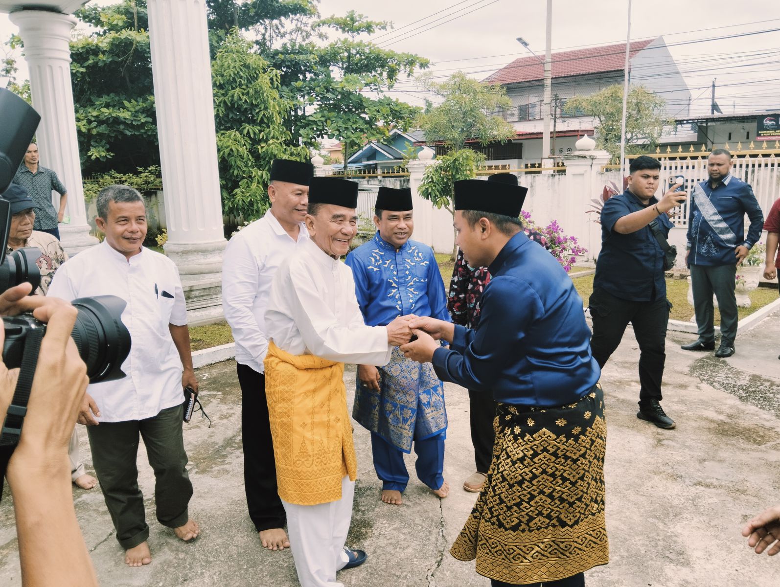 Gubernur Riau Abdul Wahid didampingi istri melakukan kunjungan silaturahmi pada hari Raya Idul Fitri 1446 H ke rumah mantan Gubernur Rian Annas Maamun yang berada di Jalan Duyung, Kelurahan Tangkaerang Barat, Kecamatan Marpoyan Damai,Rabu (2/4/2025).