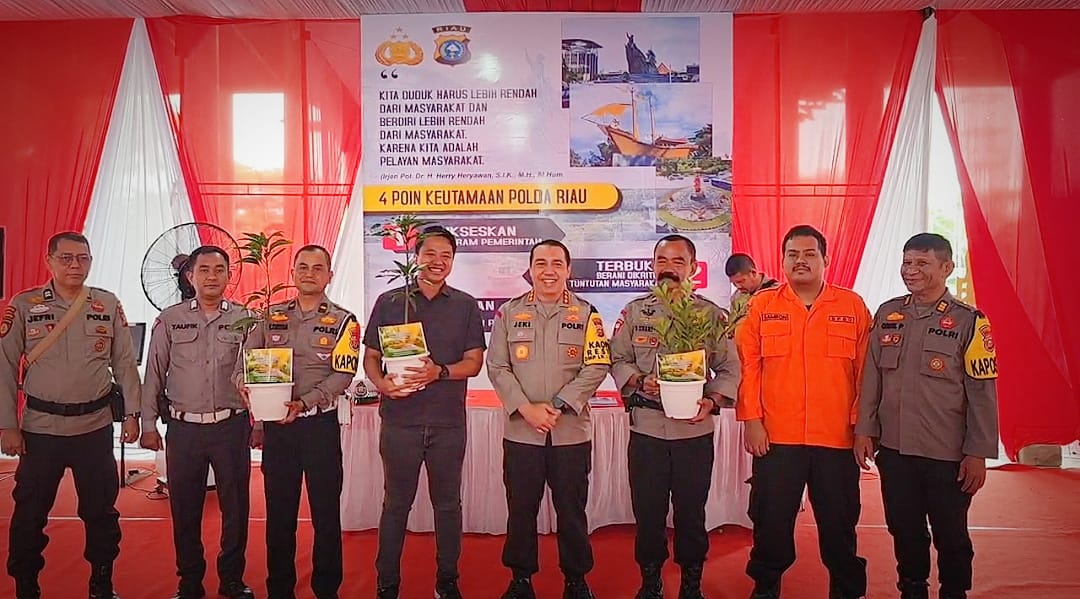 Kapolresta Pekanbaru memberikan secara simbolis bibit pohon kepada tiga personel yang berulang tahun pada tanggal 4 April 2025, yakni: