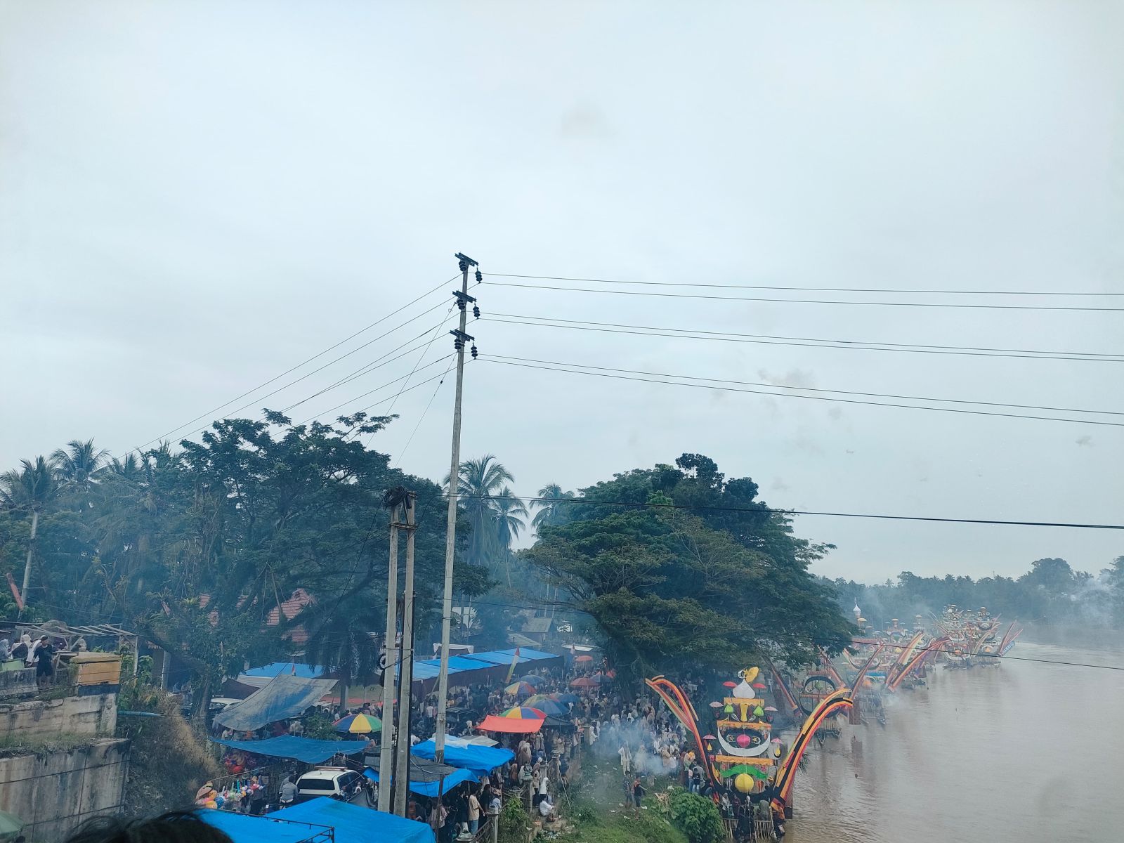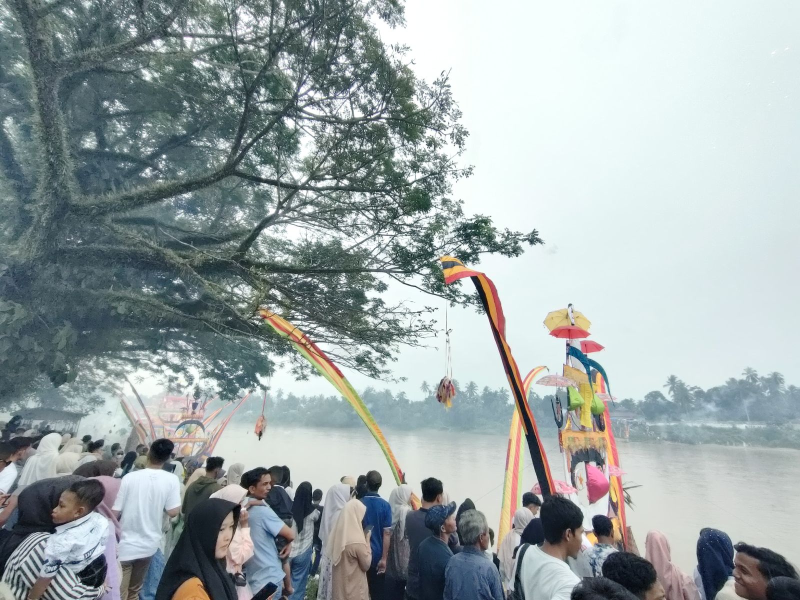 Pantauan wartawan Kiblatriau.com di lapangan, tampak terlihat ribuan orang yang memadati Sungai Kuantan di Tepian Muko Lobuah dan juga Jembatan Lubuk Jambi yang tampak tumpah ruah dan penuh sesak dikerumuni orang yang menyaksikan tradisi dan budaya tahunan masyarakat Lubuk Jambi Kecamatan Kuantan Mudik ini, Sabtu (5/4/2025)..
