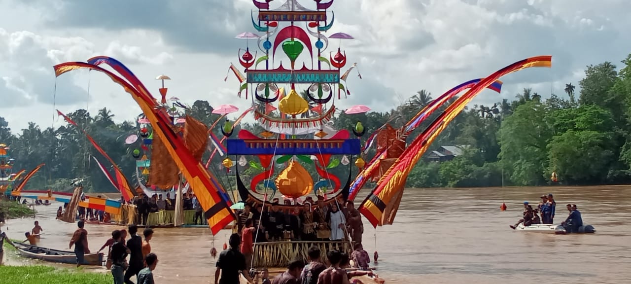 Acara Perahu Baganduang berlangsung di Topian Muko Lobuah Desa Banjar Padang, Kecamatan Kuantan Mudik Kabupaten Kuansing, Sabtu (5/4/2025).