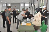 Komandan Korem 031/Wira Bima, Brigjen TNI Sugiyono, melaksanakan pengecekan urine terhadap prajurit yang digelar pada saat apel pagi, Selasa (8/4/2025)