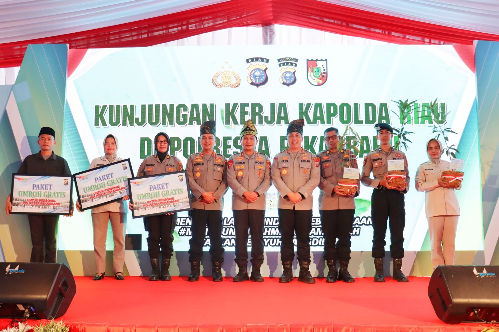 Dalam rangkaian kegiatan tersebut, Kapolda juga memberikan hadiah umroh kepada personel berprestasi, menyerahkan bibit pohon sebagai simbol komitmen lingkungan, dan menandatangani prasasti pembangunan Polsubsektor Marpoyan Damai.