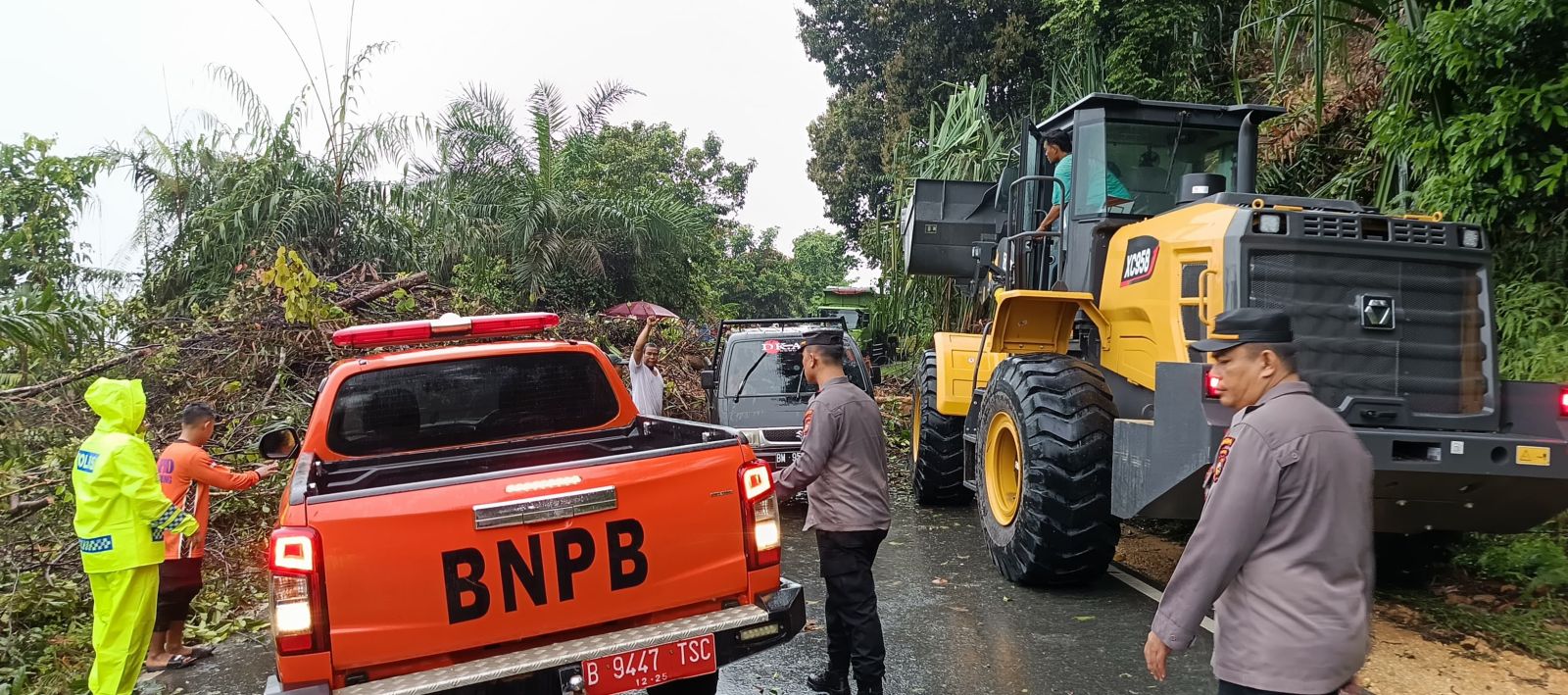 Menanggapi kejadian ini, jajaran Satlantas Polres Kuansing bergerak cepat bersama personel Polsek Singingi yang dipimpin Kapolsek AKP Linter Sialoho. Mereka dibantu Camat Singingi, BNPB Kabupaten Kuansing, pemerintah desa Logas, serta masyarakat setempat untuk mengevakuasi material longsor dan melakukan pemotongan pohon yang menghalangi jalan.