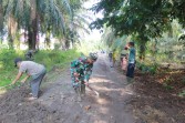 Satuan Tugas (Satgas) Tentara Manunggal Membangun Desa (TMMD) ke-124 yang melaksanakan pengerasan jalan di wilayah Kelurahan Bukit Kayu Kapur Kecamatan Bukit Kapur, Dumai Kamis (08/05/2025).
