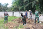 Personel Satgas TMMD bersama warga Blok A bahu membahu dalam proses pembangunan MCK. Kegiatan yang berlokasi di Jalan Baru Blok A RT 14, Selasa (13/5/2025)