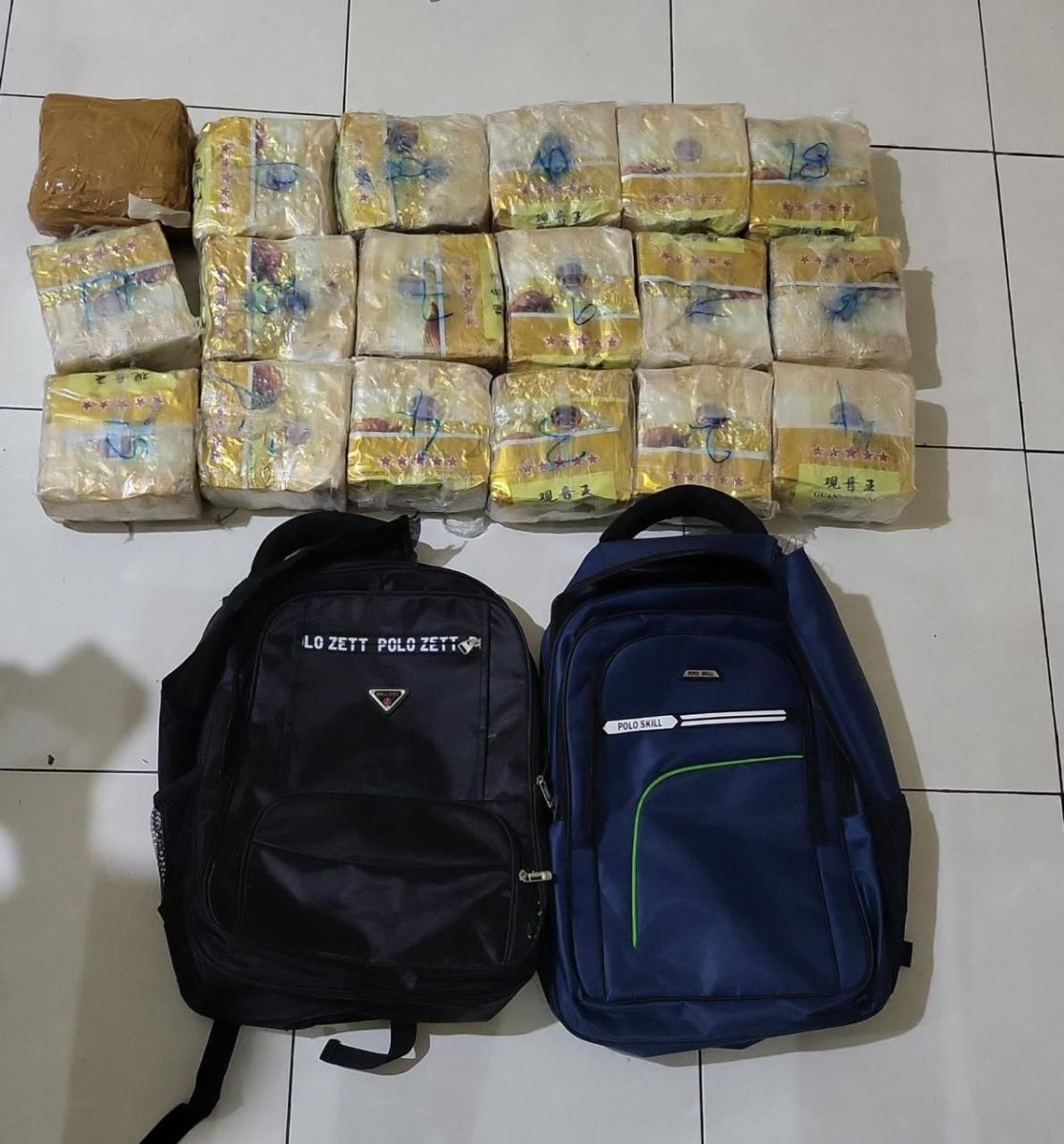 Dijelaskan Putu, dari mobil tersebut, pihaknya mengamankan dua orang berinisial I dan EIA. Saat dilakukan penggeledahan, ditemukan dua tas ransel berisi 18 bungkus besar sabu berkemasan teh Cina warna kuning.