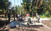 Kegiatan ini melibatkan personel TNI bersama masyarakat setempat yang bahu-membahu melaksanakan pengecoran sebagai bagian dari pembangunan infrastruktur pendukung akses jalan.