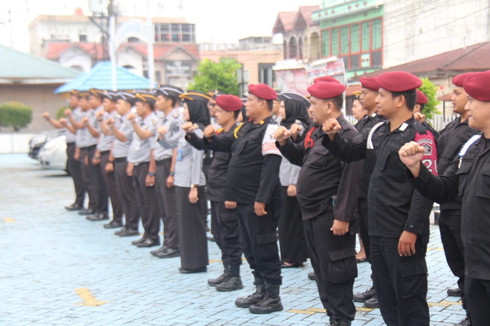 PEKANBARU--(KIBLATRIAU.COM)-- Seluruh pegawai Lembaga Pemasyarakatan (Lapas) Kelas IIA Pekanbaru yang terdiri dari jajaran administrasi, petugas Pintu Utama (P2U), serta petugas pengamanan, mengikuti pelaksanaan apel pagi yang berlangsung di halaman depan Lapas Kelas IIA Pekanbaru, Senin (19/5/2025). Apel pagi tersebut dipimpin langsung oleh Kepala Lapas Kelas IIA Pekanbaru dan turut dihadiri oleh Kepala Kantor Wilayah Direktorat Jenderal Pemasyarakatan Riau Maizar.