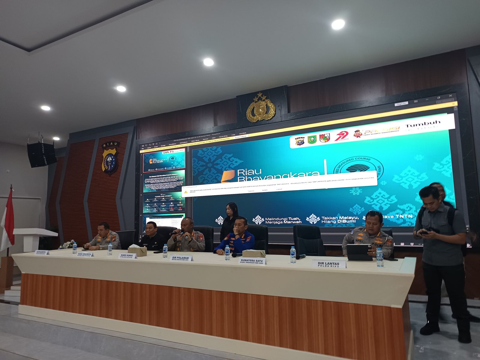 Kabid Humas Polda Riau, Kombes Pol Anom Karibianto saat pimpin kegiatan konferensi pers di Mapolda Riau, Kamis (10/7/2025).