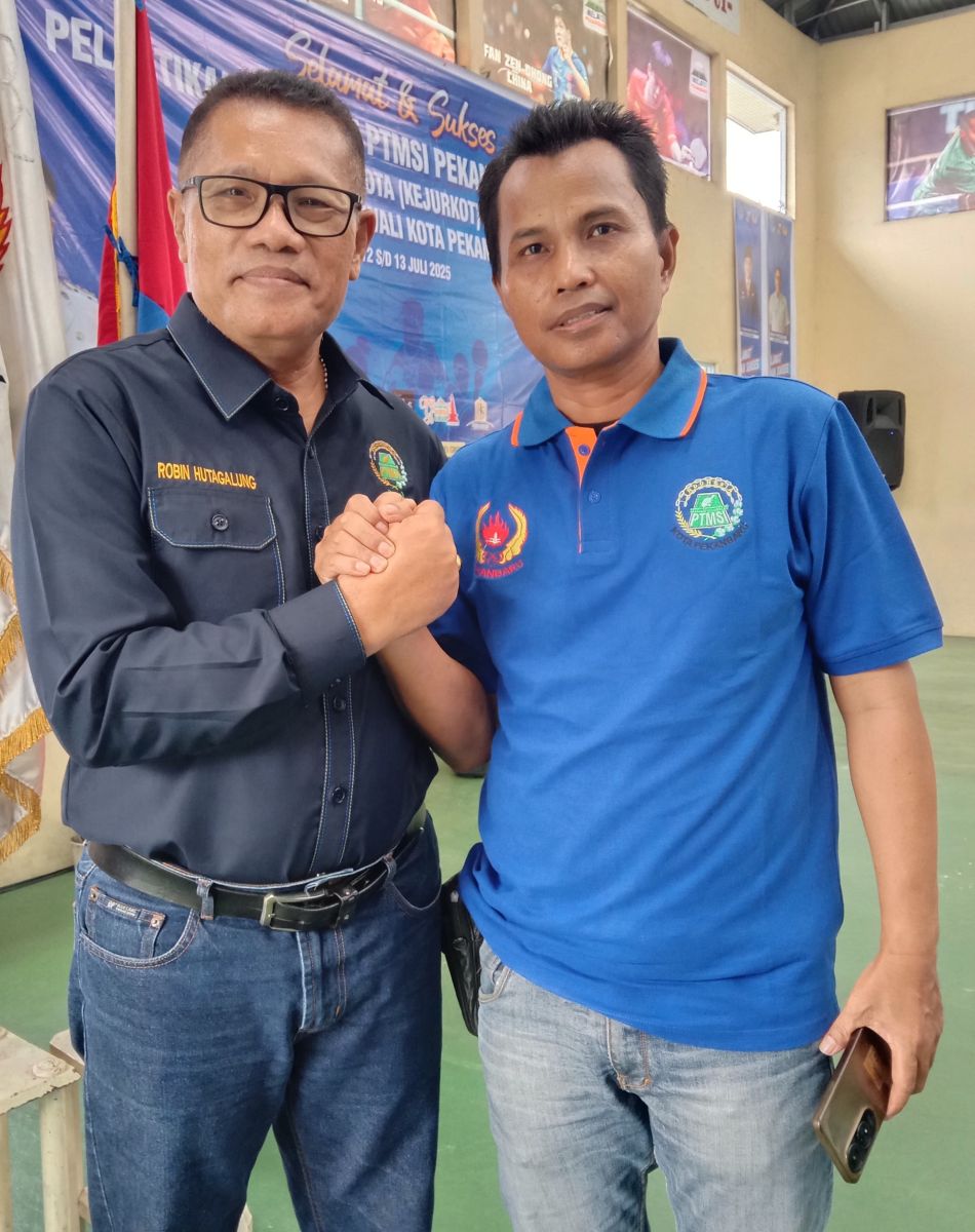 Ketua Umum Pengprov PTMSI Riau Robin P Hutagalung SH, secara resmi melantik Adrizal SE beserta jajaran Pengurus Kota (Pengkot) Persatuan Tenis Meja Seluruh Indonesia (PTMSI) Pekanbaru periode 2025-2029 di GOR Tenis Meja Melati, Binawidya Pekanbaru, Sabtu