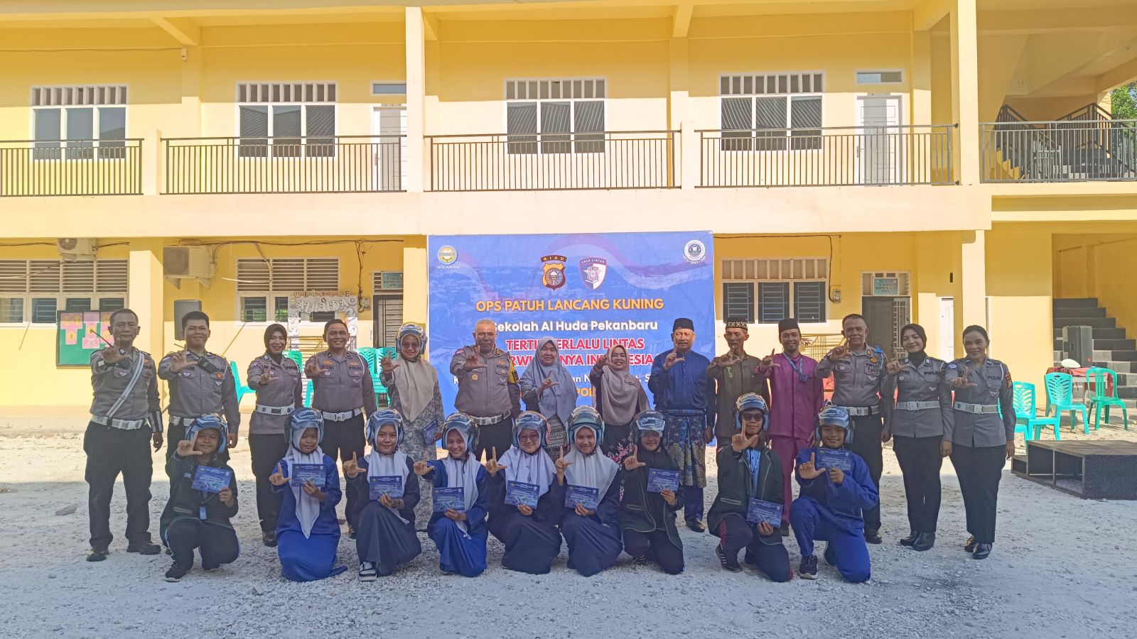 Dalam rangka Operasi Patuh Lancang Kuning 2025, Direktorat Lalu Lintas Polda Riau menggelar program edukatif “Police Goes to School” dan “Green Policing” di Yayasan Al Huda Pekanbaru yang meliputi SMP, MTs, SMA, dan SMK, Jum'at (18/7/2025).