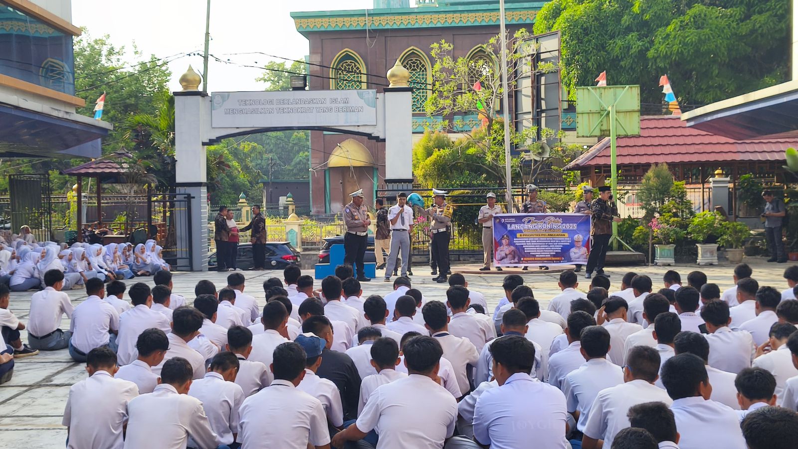 PEKANBARU--(KIBLATRIAU.COM)-- Rangkaian pelaksanaan Operasi Patuh Lancang Kuning 2025, Direktorat Lalu Lintas Polda Riau terus mengedepankan pendekatan edukatif dan humanis kepada generasi muda. Bertempat di SMK Muhammadiyah 1 (SMK MUTU) Pekanbaru, kegiatan Police Goes To School dan Green Policing yang digelar Senin, (21/7/2035) pukul 07.00 WIB. Kegiatan ini, dipimpin langsung oleh Dirlantas Polda Riau Kombes Pol Taufiq Lukman Nurhidayat, S.I.K., M.H., yang didampingi oleh Kasubdit Kamsel Ditlantas Polda Riau AKBP Dasril.