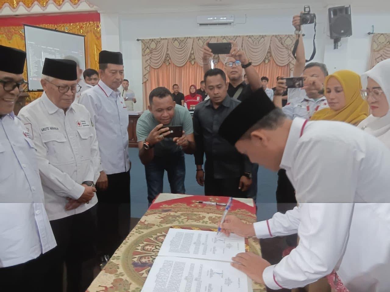 Suasana penandatangan MoU antara PMI Pasaman dan PMI Pasbar, Senin (6/10/2025).