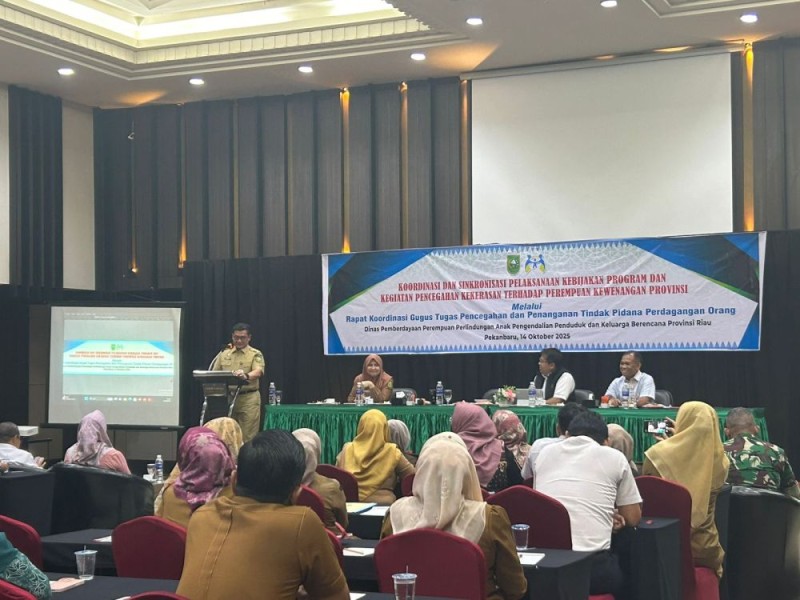 PEKANBARU--(KIBLATRIAU.COM)-- Pemerintah Provinsi Riau melalui Sekretaris Daerah Provinsi (Sekdaprov) Riau, Syahrial Abdi menegaskan bahwa perlindungan terhadap perempuan dan anak harus diwujudkan melalui aksi nyata, bukan hanya dengan membentuk struktur gugus tugas di atas kertas. Demikian disampaikannya dalam rapat koordinasi gugus tugas pencegahan dan penanganan tindak pidana perdagangan orang (TPPO) yang berlangsung di Hotel Furaya, Selasa (14/10/2025).''Provinsi Riau ini berbatasan langsung dengan negeri tetangga. Potensi kerawanannya nyata dan forum hari ini untuk menangani agar hal tersebut terukur dan terkoordinasi,'' terang Syahrial Abdi. Disampaikannya, tantangan dalam menghadapi