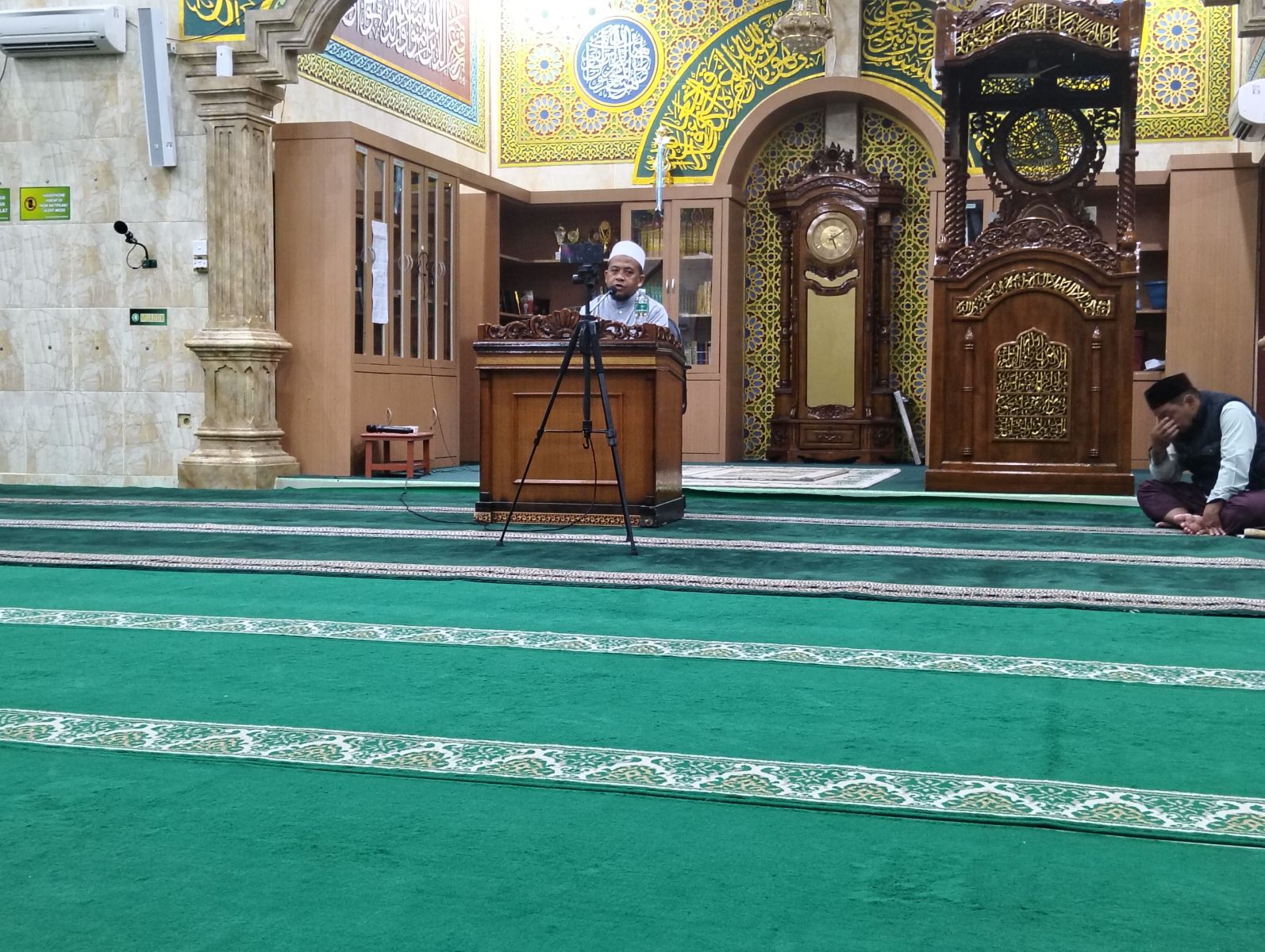 Ustadz H Syamsurijal SAg saat menyampaikan tausiah subuh di Masjid Nurul Muhsinin yang berada di Jalan Ikan Mas,Kelurahan Tangkerang Barat, Kecamatan Marpoyan Damai Ahad (19/10/2025)