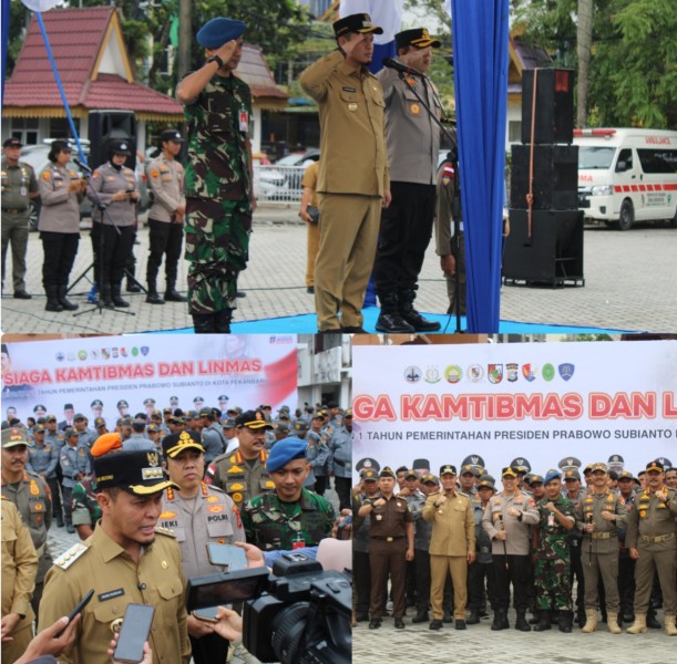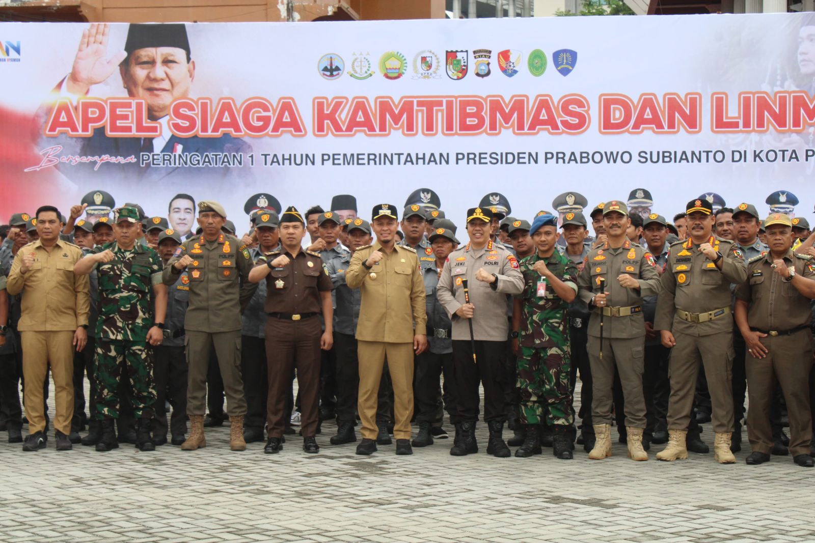 PEKANBARU--(KIBLATRIAU.COM)--Dalam rangka memperingati satu tahun pemerintahan Presiden Prabowo Subianto dan Wakil Presiden Gibran Rakabuming Raka, Pemerintah Kota Pekanbaru bersama Polresta Pekanbaru menggelar Apel Siaga Kamtibmas dan Linmas di halaman Mall Pelayanan Publik (MPP) Kota Pekanbaru, Jalan Jenderal Sudirman No. 464, Senin (20/10/2025).