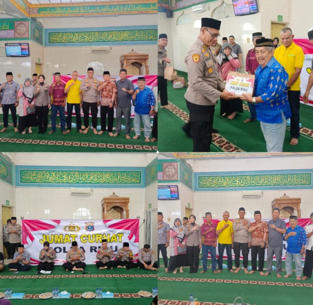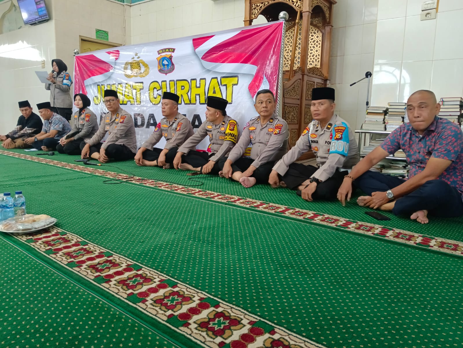 Polda Riau bersama Polresta Pekanbaru menggelar kegiatan Jumat Curhat yang bertempat di Masjid Istiqoroh, Jalan Riau Gang Geliga, Kelurahan Padang Terubuk, Kecamatan Senapelan, Kota Pekanbaru, Jumat (24/10/2025)