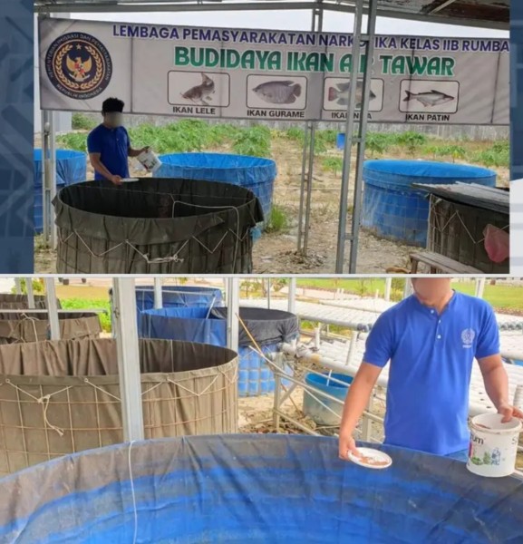 Lembaga Pemasyarakatan (Lapas) Narkotika Kelas IIB Rumbai terus mengembangkan program ketahanan pangan melalui kegiatan budidaya ikan lele sistem bioflok. Pada Rabu (29/10/2025)