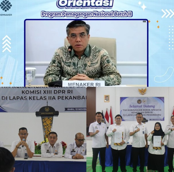 Kementerian Ketenagakerjaan RI secara resmi membuka Orientasi Program Pemagangan Nasional bagi peserta Batch IIa yang melaksanakan pemagangan di Lembaga Pemasyarakatan (Lapas) Kelas IIA Pekanbaru, Senin (24/11/2025)