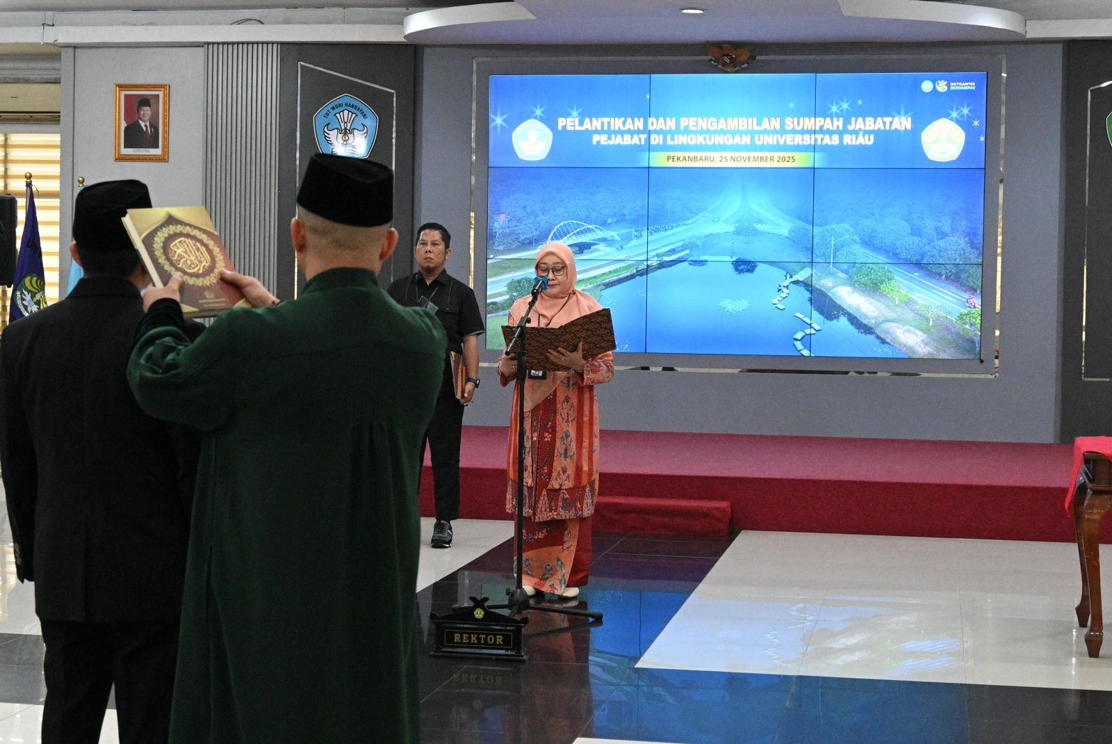 Prosesi pelantikan yang berlangsung khidmat ini digelar di Ruangan Siak Sri Indrapura, Lantai 4 Gedung Rektorat Universitas Riau, Selasa (25/11/2025).