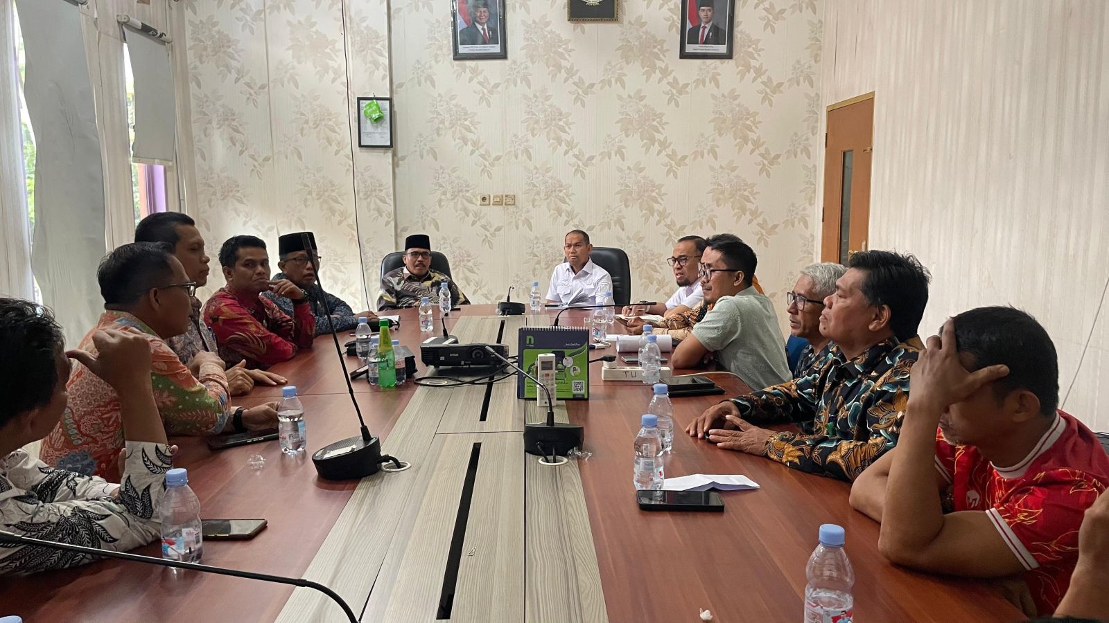 Kakan Kemenag Kota Pekanbaru Syahrul Mauludi saat melaksanakan rapat bersama Pemko Pekanbaru yang dihadiri oleh Asisten I Pemko Masykur Tarmizi dan Kabag Kesra Tri Sepna Saputra, Rabu (26/11/2025