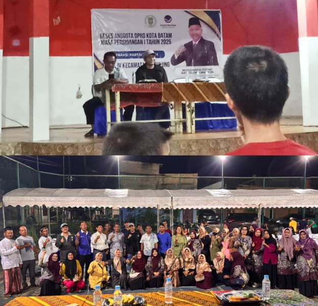 BATAM--(KIBLATRIAU.COM)-- Anggota DPRD Kota Batam Muhammad Dycho Barcelona Maryon dari Komisi III partai Nasdem menggelar reses di RW 02 Kavling Sagulung Jaya, Kelurahan Sei Lekop, Kecamatan Sagulung, Batam Kamis (27/11/2025). Kegiatan reses ini menjadi momen penting bagi Muhammad Dycho serta warga yang hadir.