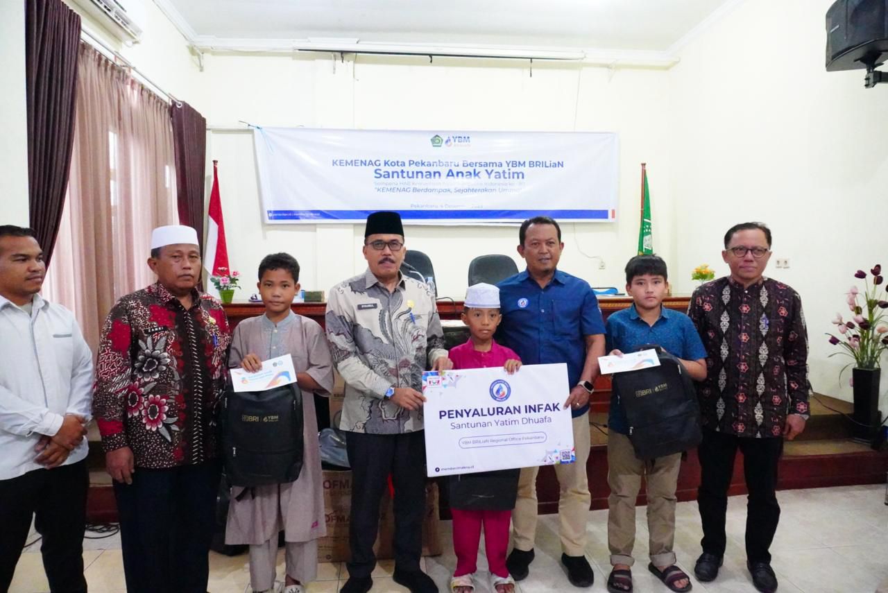 PEKANBARU--(KIBLATRIAU.COM)-- Bersempena memperingati Hari Amal Bakti (HAB), Kementerian Agama ke-80, Kementerian Agama Kota Pekanbaru bersama dengan Yayasan Baitul Mal Brilian (YBM) menyalurkan santunan anak yatim.